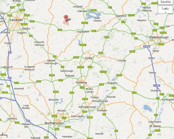 Driving north on the A1 just after Wansford turn off onto the A47. Follow the A47 to Leicester.